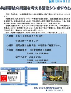 7月25日 冤罪福岡事件と共謀罪(古川龍樹さん・生命山シュバイツァー寺住職、八尋光秀弁護士)