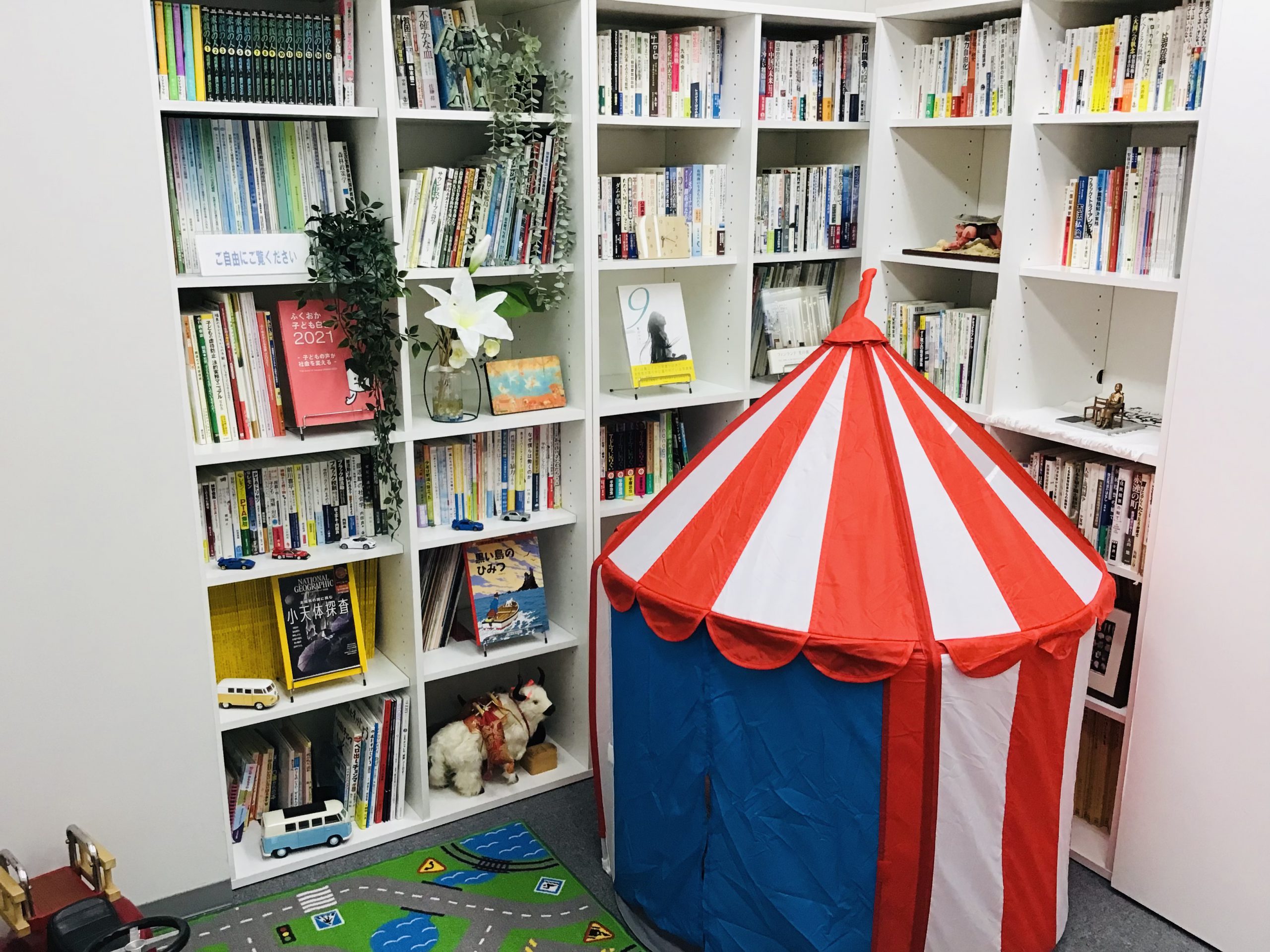 FacebookX 相談室が1室増えたので従来の相談室を模様替えしました。大橋法律事務所は子どもを連れて相談に来る方が多いので、子どもに手にとってもらいたい本を子どもの目線に集めてみました。 このコーナーには南野森先生の「憲法主義」が不可欠なんやけど現在行方不明。誰かに貸したかな? FacebookX