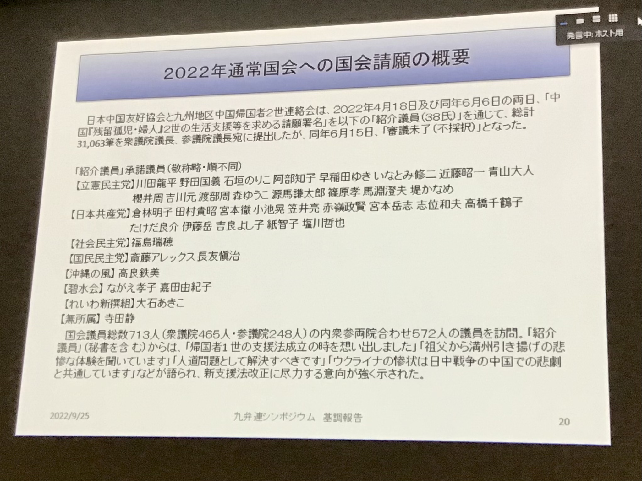 【九州弁護士会連合会】日中国交正常化共同声明50周年シンポジウム「中国帰国者の残された課題の解決と日中友好の展望を考える」