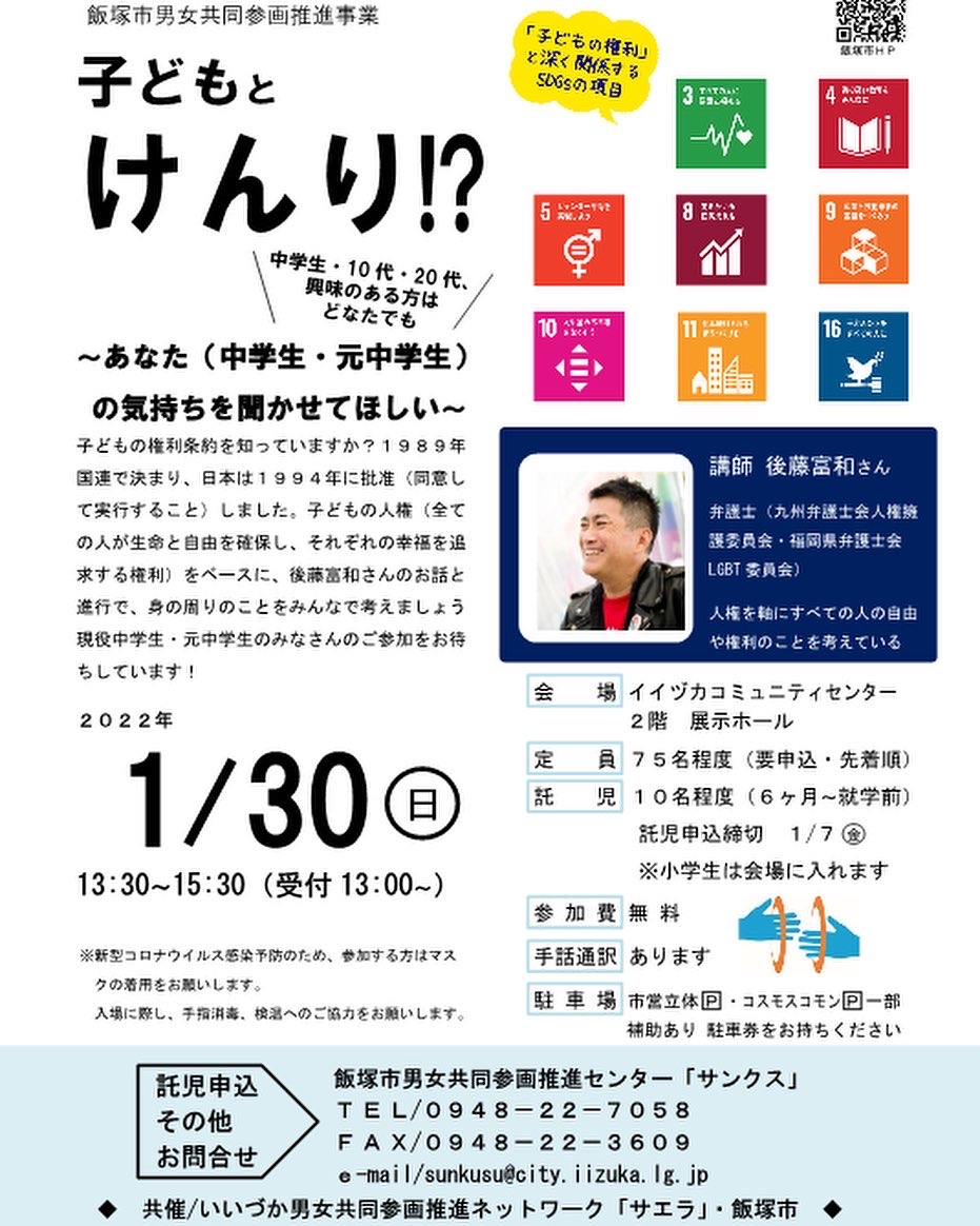 「子どもの人権と合理的配慮〜子どもを取り巻く環境を考える〜(後藤富和さん・弁護士)」(飯塚市男女共同参画センター)要申込