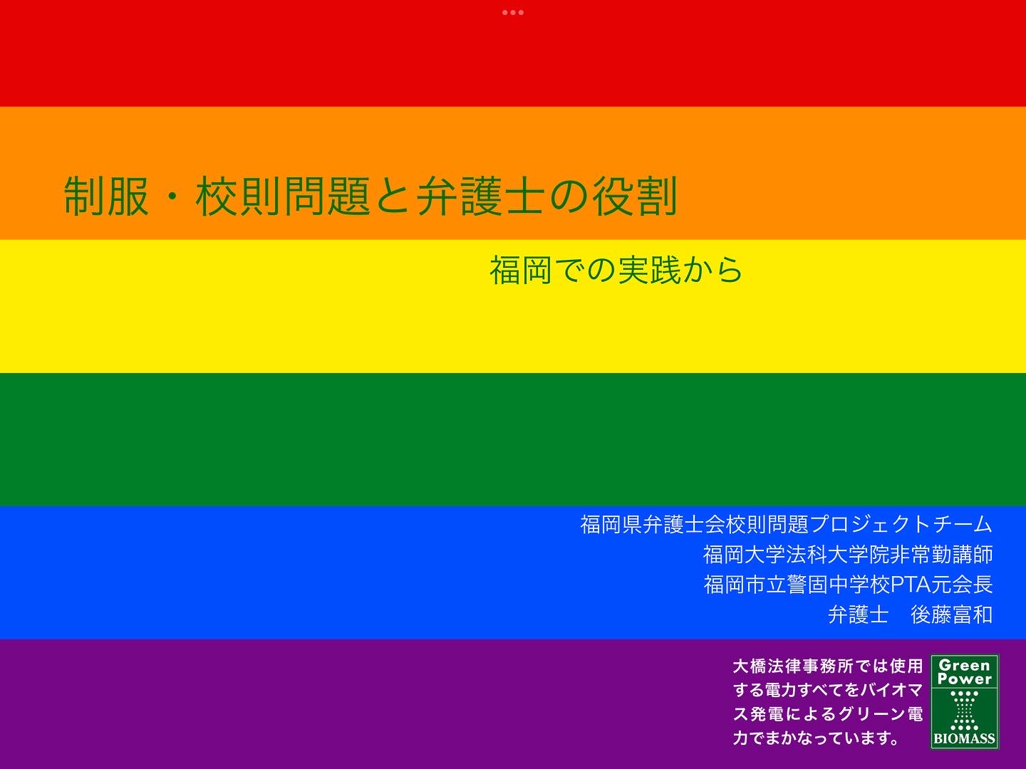 愛知県弁護士会にお招きいただき福岡での実践を例に制服・校則問題と弁護士の役割についてお話ししました。