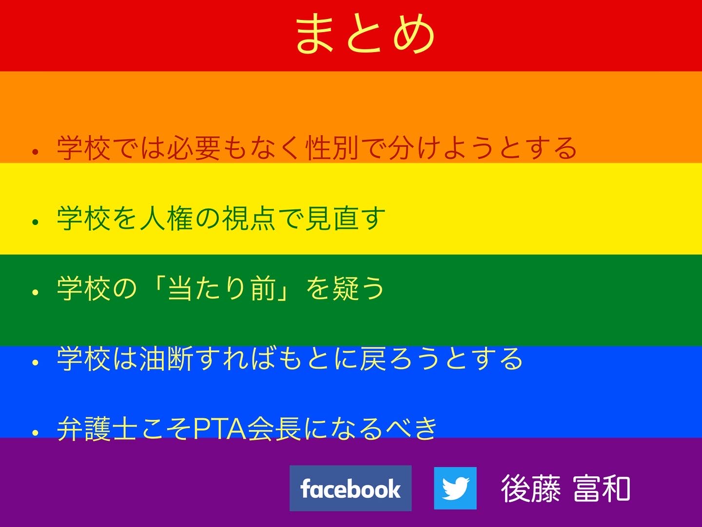 工藤勇一校長や西郷孝彦校長のようなカリスマの出現を待つのも良いけど、PTA活動を適正化することが自ずと子ども達の自由を取り戻すことにつながると感じました。