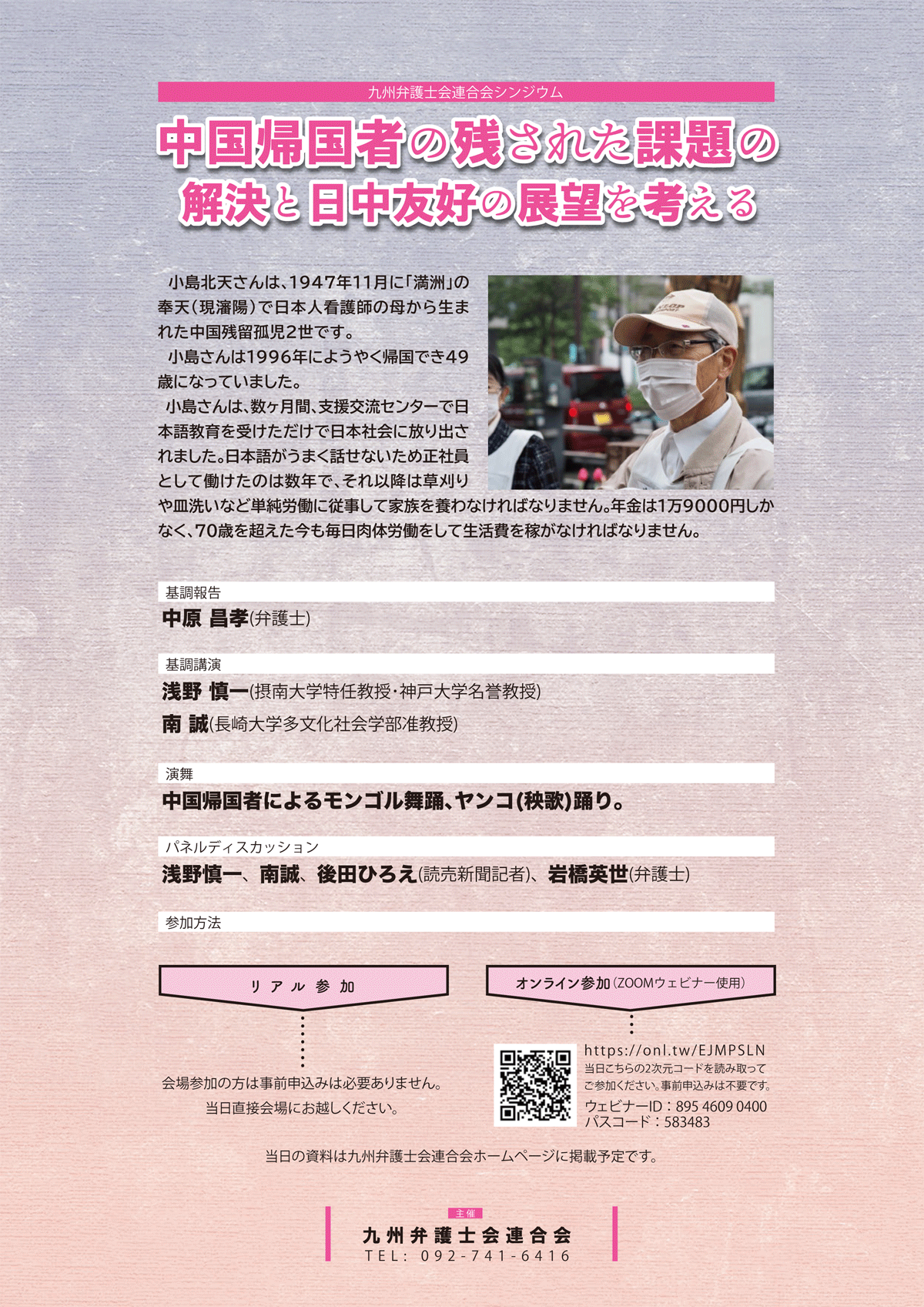中国帰国者の残された課題の解決と日中友好の展望を考える
