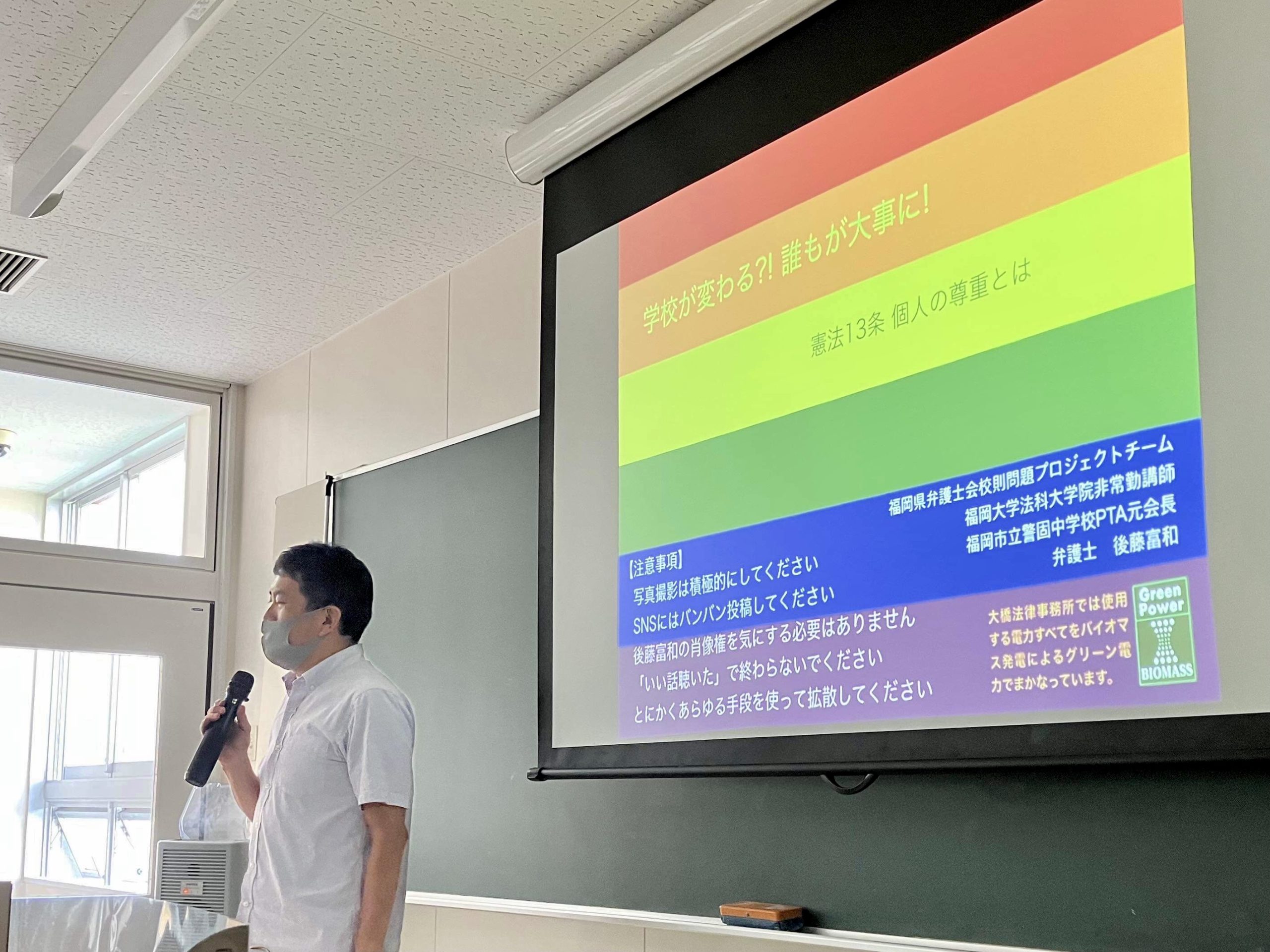FacebookX 立花高校の教職員向けに人権の講義。自主参加の生徒も。 ・人は生まれながら自由 ・もちろん子どもも自由 ・自由が制限されるのは人の自由とぶつかった時だけ ・その制限も必要最小限度でなければならない 人権の視点で校則を見た時ほとんどの校則は人権侵害。 決まりを疑え! #校則 #子どもの権利 FacebookX