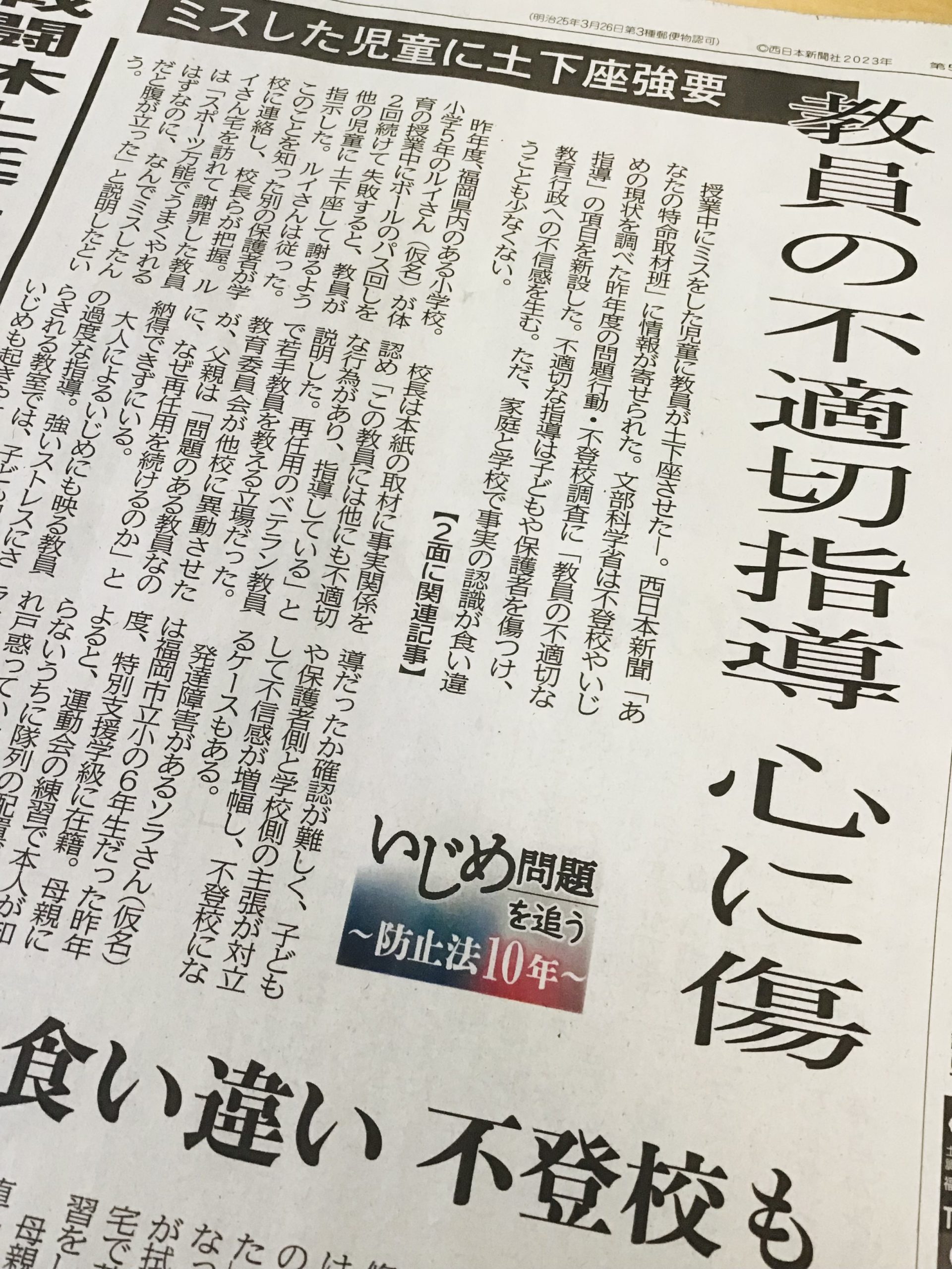 【西日本新聞】教員の「不適切指導」食い違う認識 児童に土下座強要、泣いても列へ… 事実確認で心に傷も