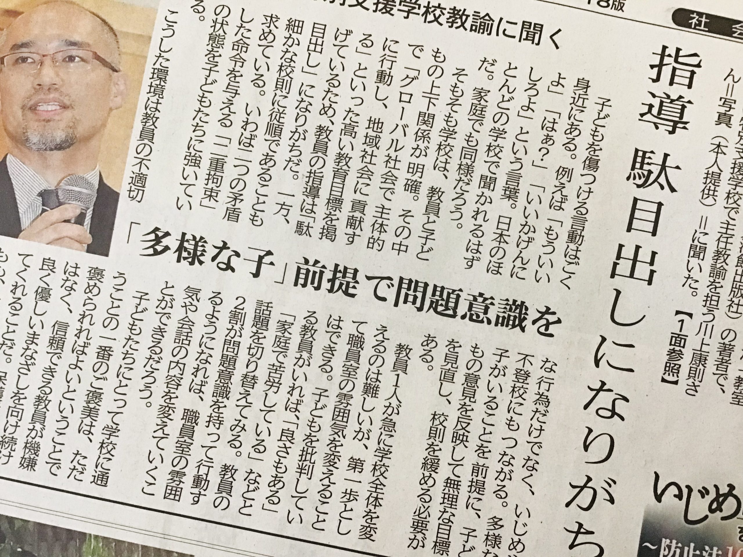 「多様な子がいることを前提に、子どもの意見を反映して無理な目標を見直し、校則を緩める必要がある」川上康則さん・特別支援学校主任教諭