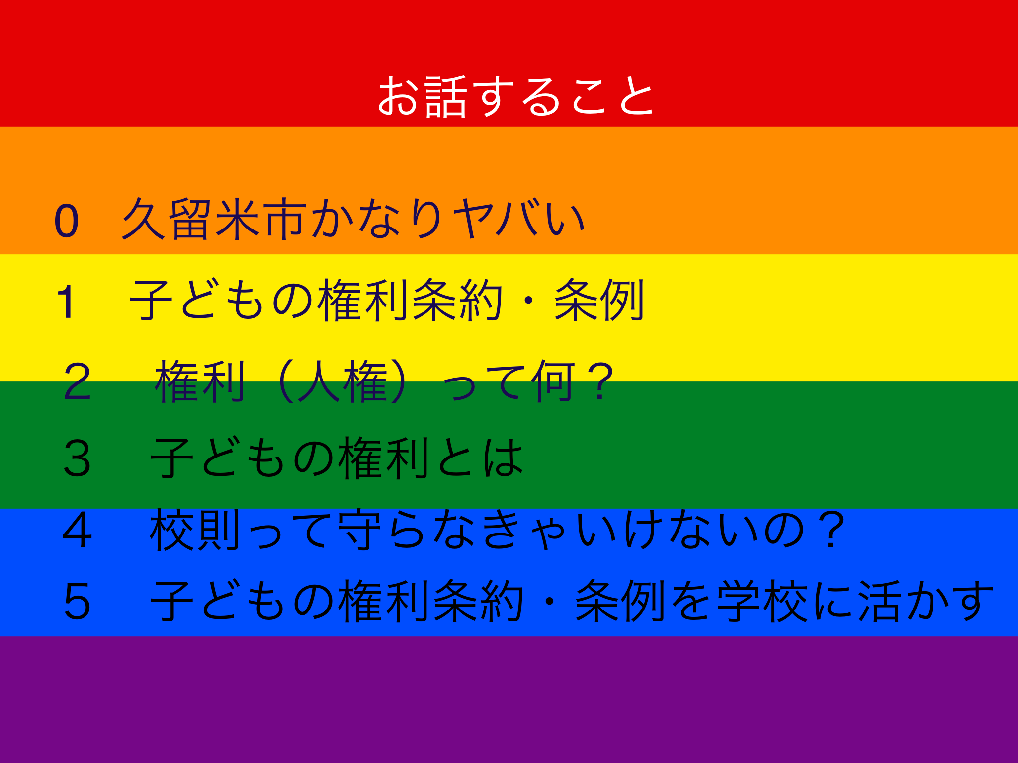 久留米子どもと教育のために手をつなぐ会にお招きいただき「校則って何?」をテーマに子どもの権利についてお話をしました。