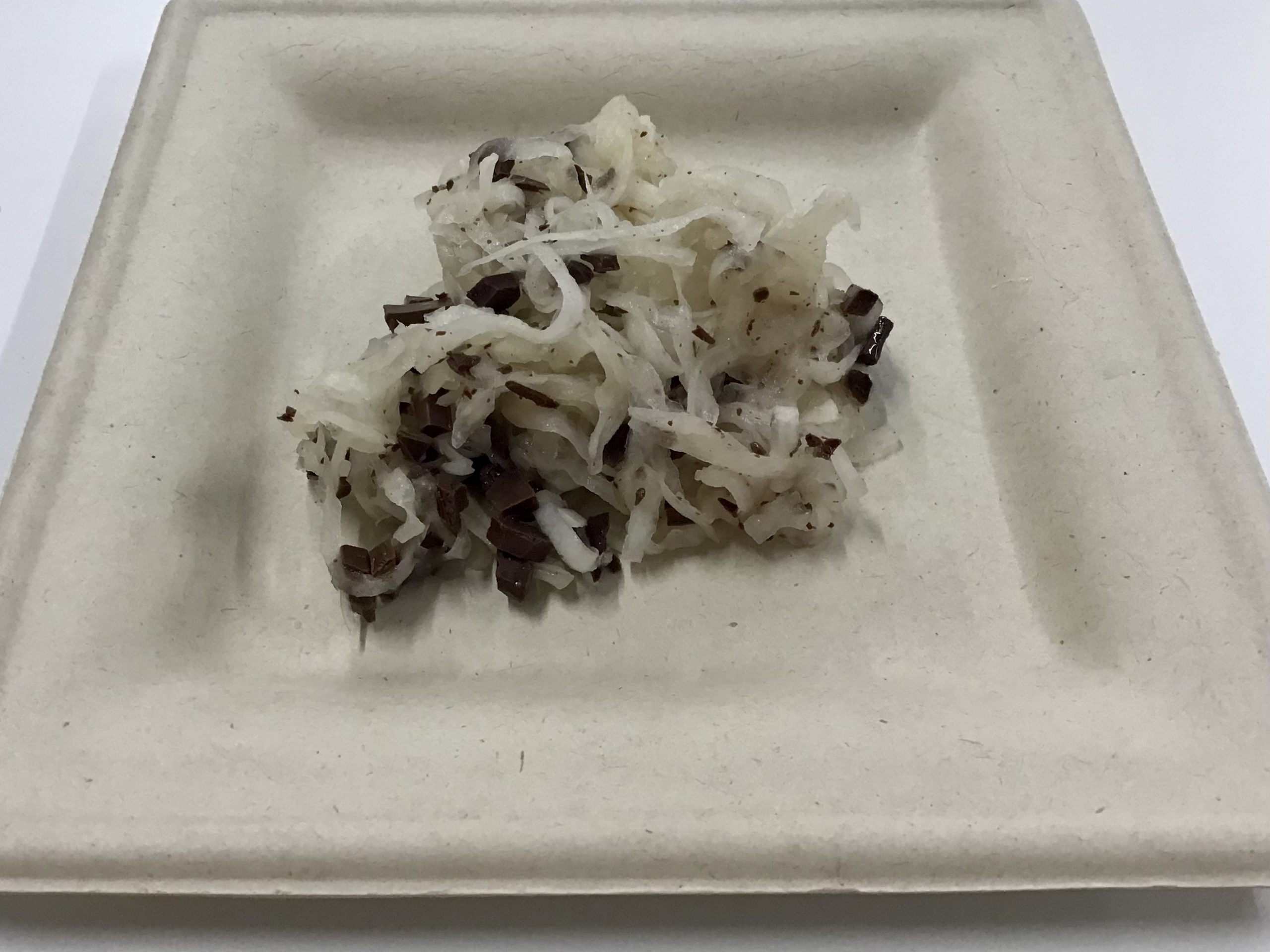 それにしても、糸島産有機大根とチョコの和物の美味しいこと。食べる前は恐る恐るやったけど、これはワインに合うよ。