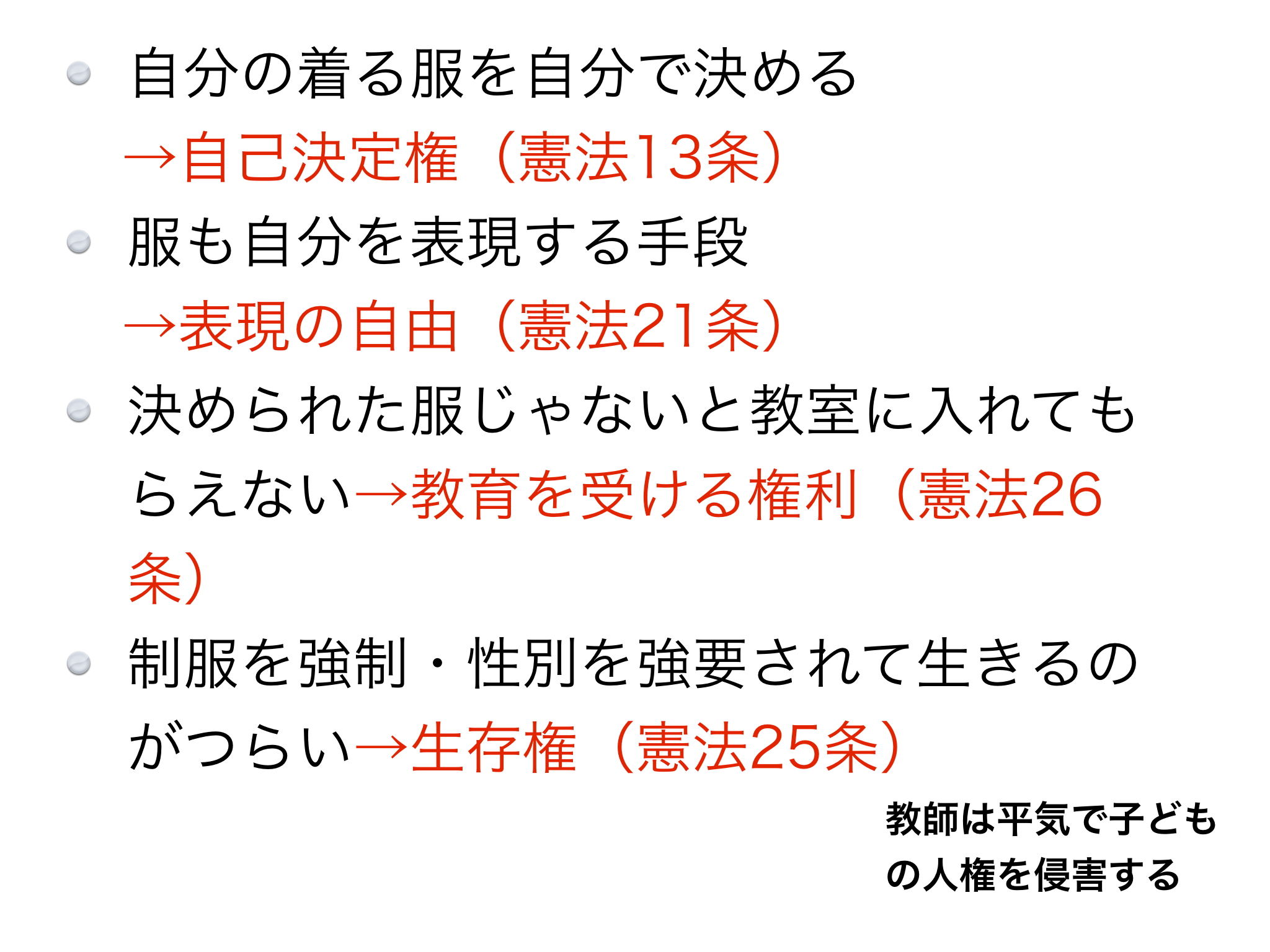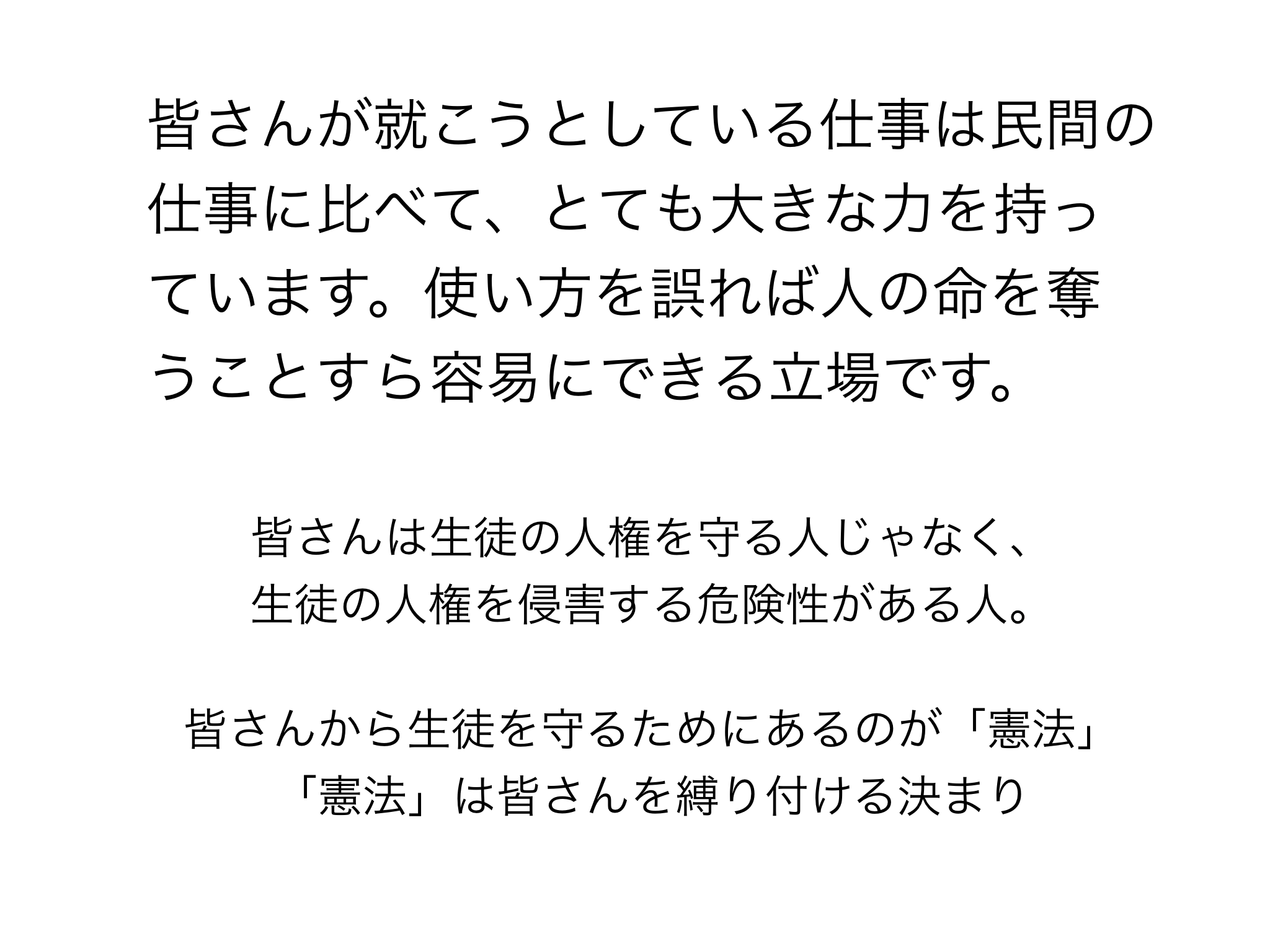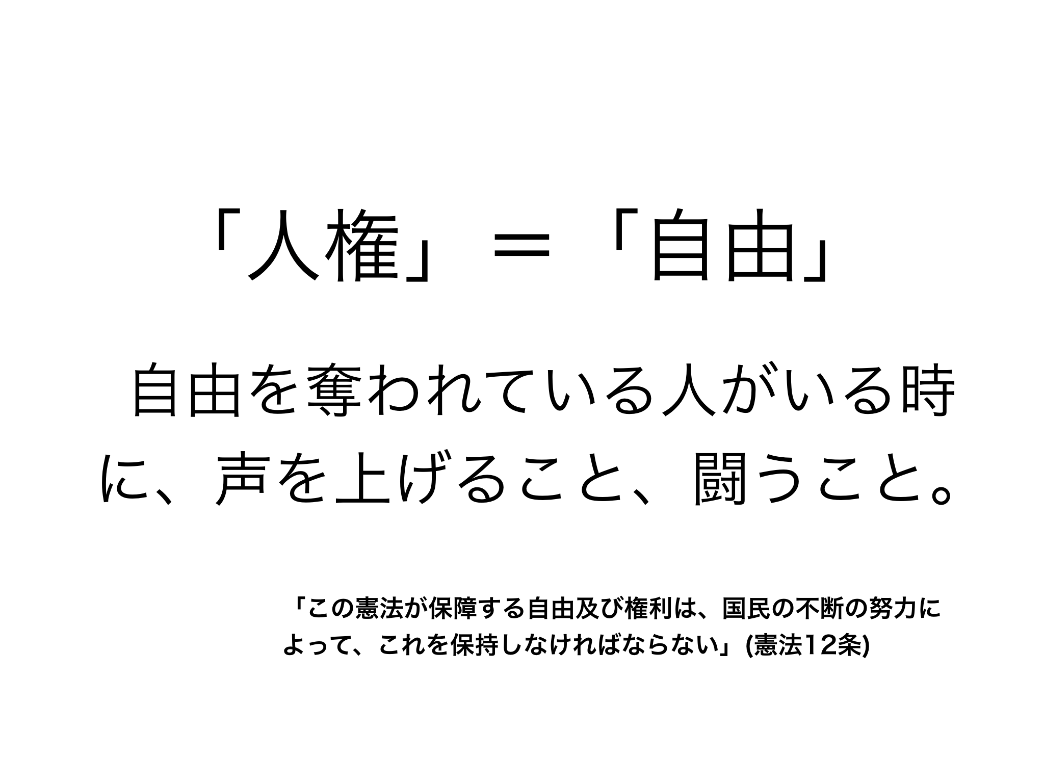 直球です。直球で訴えないと、人権は思いやりや優しさという学校に蔓延する勘違いを打破できません。