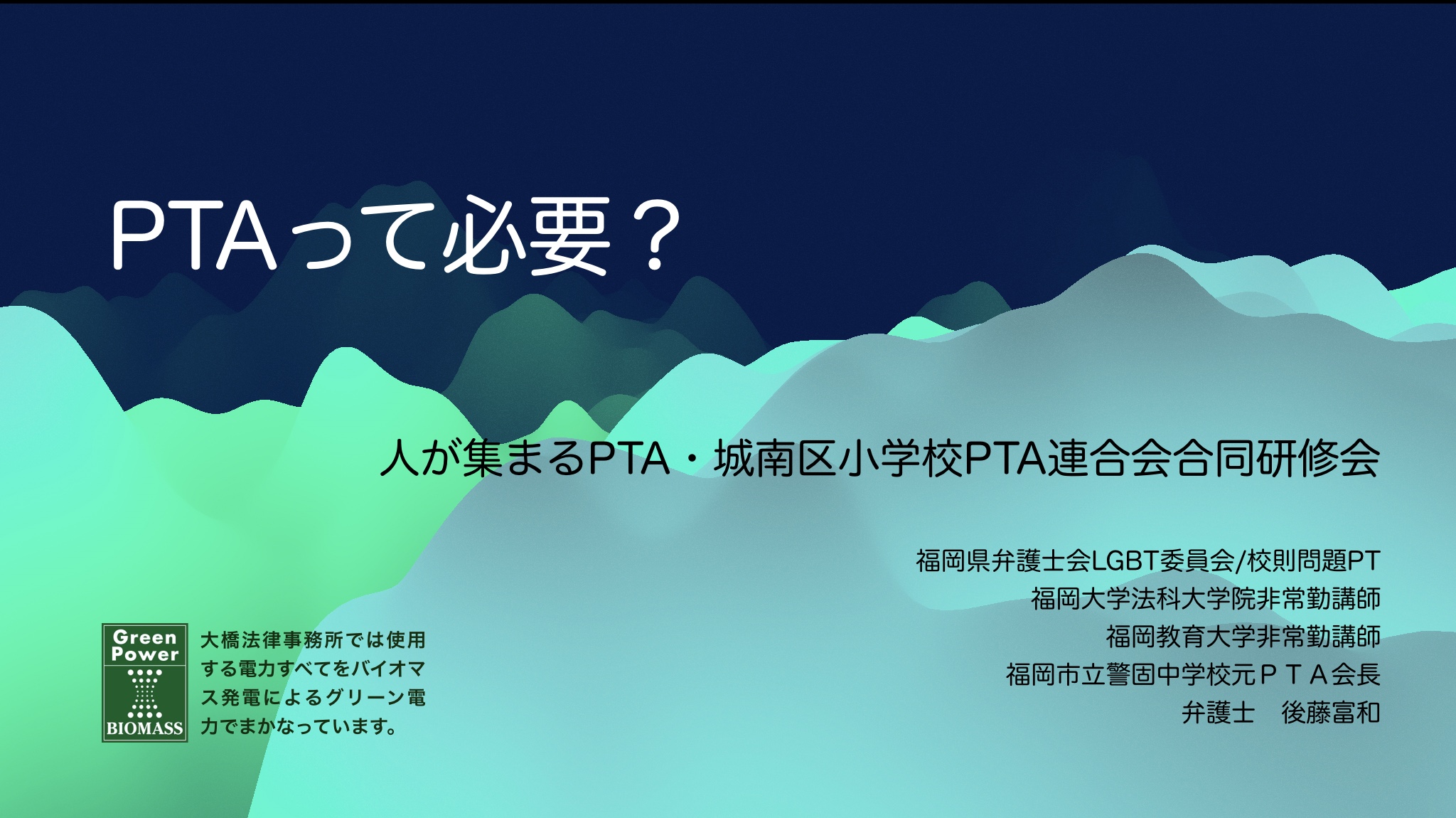 そこで、今回、城南区の小学校PTA役員を対象に、PTA加入の自由・個人情報の取扱いについてお話をすることとなりました。