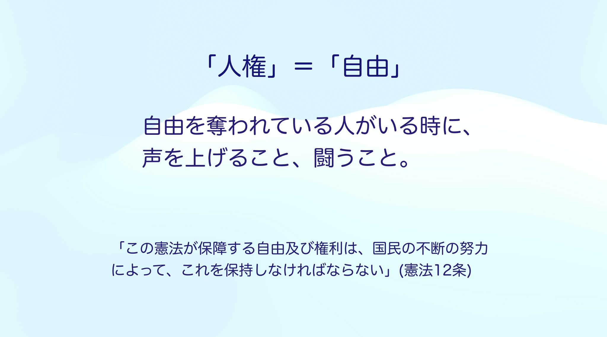 そこで、今日の講演では、前半に「人権」の基本的なお話をした上で、各論に入ることとしました。